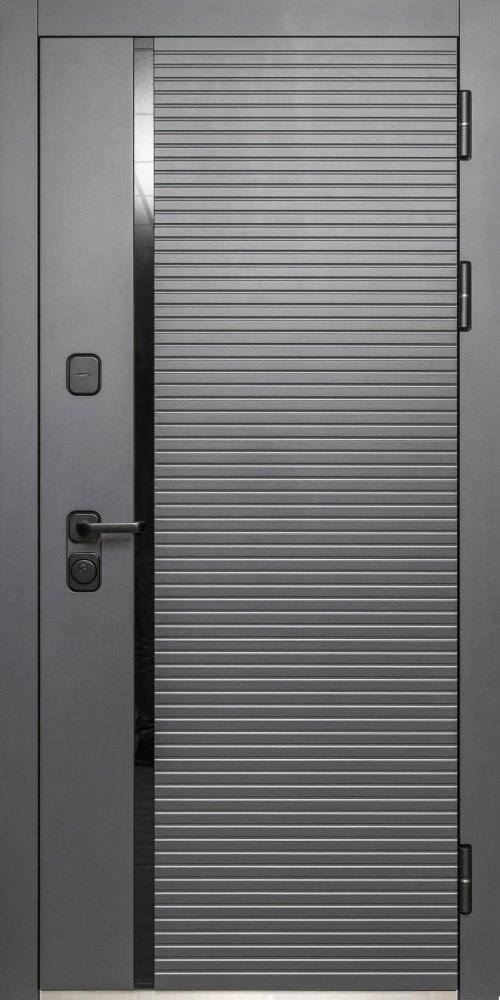 Металл: Порошково-полимерное покрытие, цвет Муар черный с блестками 9005 Отделка снаружи: лист стали + ламинированная МДФ панель 12мм , цвет Антрацит софт + вставка из черного акрила